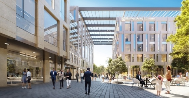 Daugiafunkcė erdvė „Live Square“, kurią sudarys verslo centras, apartamentai, viešoji erdvė su lauko terasa ant stogo, skveras su interaktyvia skulptūra ir fontanu bei tarptautinis tinklo „Hilton Garden Inn“ viešbutis, Gedimino prospekto ir V. Kudirkos gatvės sankirtoje bus atverta 2019 m. pavasarį.