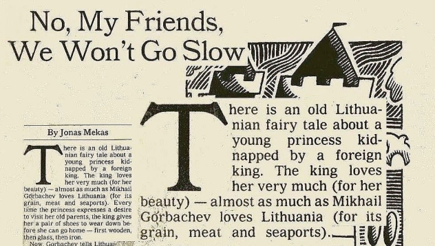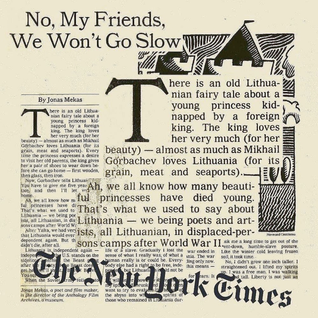 Pavadinimą įkvėpė 1990 m. kovo pabaigoje viename didžiausių JAV dienraščių „The New York Times“ paskelbta išeivijos menininko Jono Meko esė „No, my friends, we won’t go slow“ („Ne, mano draugai, mes nesulėtinsime žingsnio“).