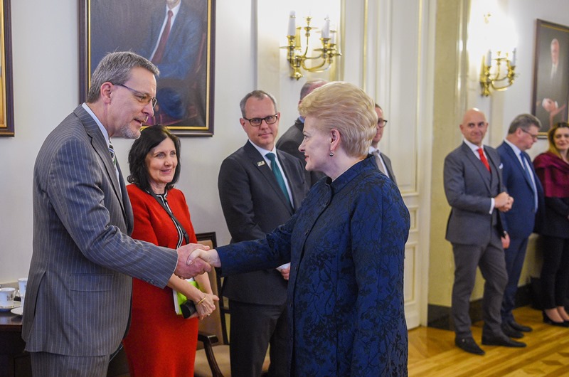 Tai – jau 5-oji Lietuvos-JAV verslo tarybos misija, kurioje dalyvauja rekordiškai didelis Amerikos kompanijų skaičius. Su prezidente susitiko tokių įmonių kaip „Lockheed Martin International“, „Oshkosh defense“, „Textron“, „OrbitalATK“, „Thermo Fisher Scientific“, „Intemedix“, „Pfizer“, „Michigan Delivery Systems and Support“, „Western Union“, „Strategic Staffing Solutions“, „Philip Morris International“ atstovai. Lietuvos ir JAV verslo taryba vienija mūsų šalyje jau investavusias Amerikos kompanijas, kurios padeda su investicijų galimybėmis Lietuvoje supažindinti ir kitas įmones.
