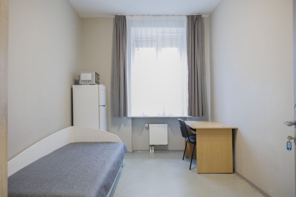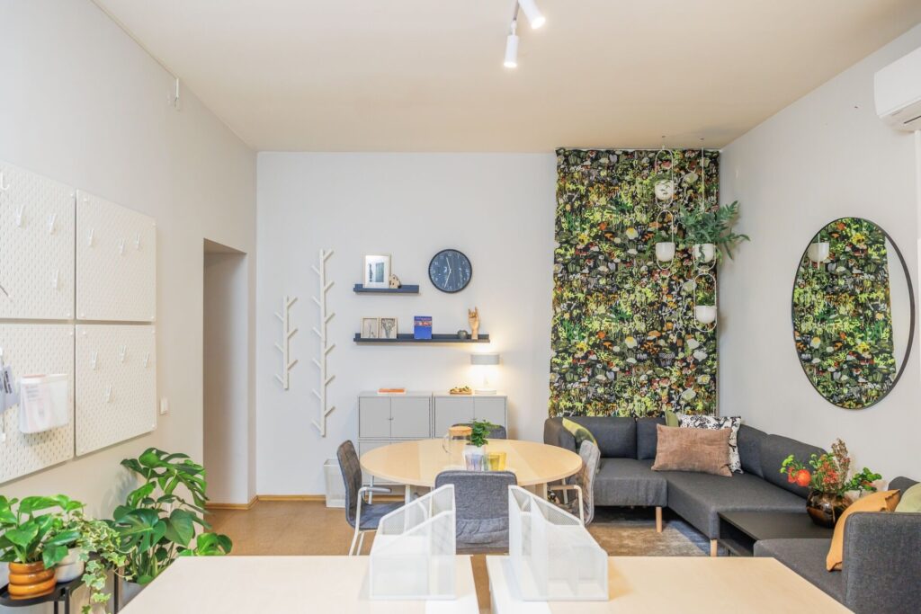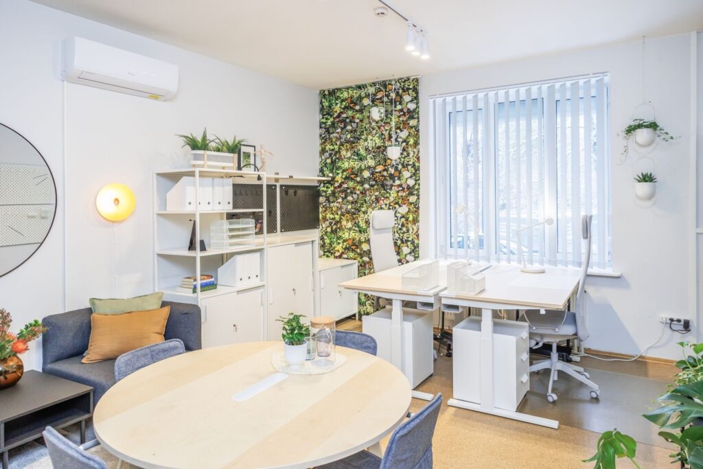 Tiesa, pokyčiai palietė ne tik gyvenamuosius kambarius, bet ir pirmąją erdvę, kur patenka į Vilniaus miesto krizių centrą atvykstančios šeimos – priėmimo ir darbo patalpą. Anksčiau labiau priminusi įprastą biurą, šiandien ši erdvė aiškiau atskirta į darbo ir pokalbių zonas. Patalpos centre esantis susitikimų stalas tapo neutraliu pokalbių tašku, padedančiu mažinti įtampą ir skatinti atviresnį bendravimą.