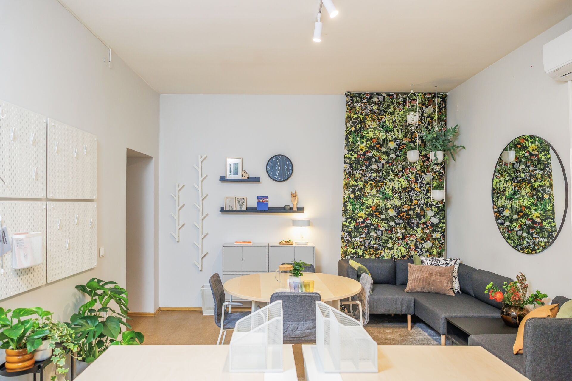 Patalpai parinkta neutrali spalvinė gama – anot dizainerės, pilki, smėliniai tonai kuria ramią, saugią aplinką ir mažina emocinę įtampą. O spalvingos detalės įneša žaismingumo.