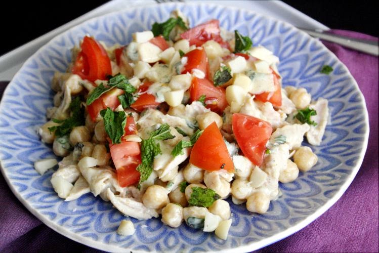 Vištieną sumaišome su avinžirniais ir puse padažo, padalijame į lėkštes. Ant viršaus užberiame pomidorus, svogūnus ir žemės riešutus, užpilame likusį padažą. Skanaus!