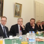 Garbūs svečiai gimnazijoje pasitikti su duona ir druska, lietuviškomis melodijomis ir tautinių juostų taku. Susitikimas su ministru vyko Rennhofo pilies konferencijų salėje. Jį moderavo gimnazijos direktorė dr. Bronė Narkevičienė. Susitikime dalyvavo gimnazijos darbuotojai, mokiniai, Vokietijos lietuvių bendruomenės atstovai, žurnalistai. Ministras noriai atsakinėjo į gimnazistų ir žurnalistų klausimus, jaunosios kartos atstovams įtaigiai aiškino finansų pasaulio subtilybes. Po susitikimo ministras R. Šadžius pietavo su gimnazijos bendruomene.