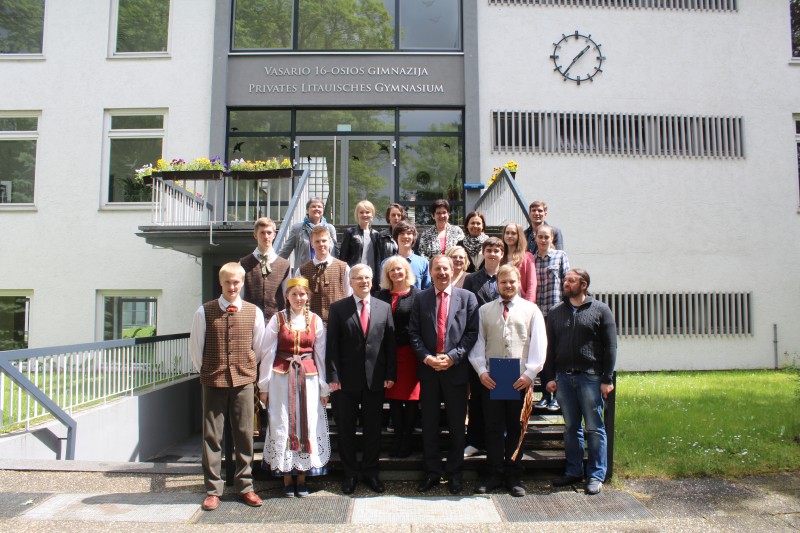 Gegužės 13 d. Vasario 16-osios gimnazijoje (Vokietijoje) pirmą kartą lankėsi Lietuvos Respublikos finansų ministras Rimantas Šadžius. Jį lydėjo Justinas Juknys, LR finansų ministerijos Europos Sąjungos reikalų koordinavimo ir analizės skyriaus vedėjo pavaduotojas, ir Lietuvos Respublikos ambasadorius Vokietijoje Deividas Matulionis.