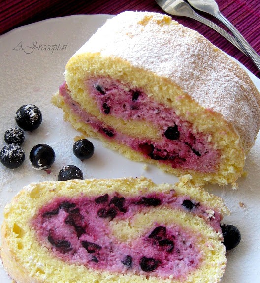 P. S. Puikus biskvitas ir labai gaivus vyniotinis. Galima naudoti ir kitas mėgstamas uogas.
