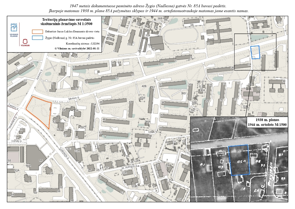 Nors sostinė nuo laisvės kovotojo J. Lukšos-Daumanto laikų labai pasikeitė ir to meto namų neišliko, Vilnius jau kurį laiką skaitmenizavo įvairių laikotarpių stambaus mastelio topografinius planus. Savivaldybės įmonės „Vilniaus planas“ specialistai juos orientavo šiuolaikinių koordinačių sistemoje, sluoksniais sutapdino su šių dienų žemėlapiais ir taip nustatė daugelio istorinių objektų vietas.