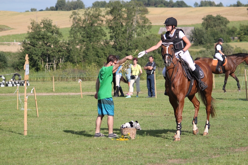 Po Sartų lenktynėse ne kartą dalyvavusio Antano Vaškelio parodomojo važiavimo, Užpalių seniūno Eugenijaus Keramino ir žirgininkės Viktorijos Jovarienės sveikinimo kalbų bei šventėje dalyvaujančių raitelių parado duotas startas pirmajam konkūrui. Kryžiukų konkūras – tai rungtis, kurioje dalyvauja bendrystės su žirgu pradžiamokslį kremtantys raiteliai. Tai pirmieji jų, kaip raitelių, startai, todėl galima visapusė trenerių pagalba. Kituose konkūruose, kai kartelės aukštis kilo nuo 60 iki 100 cm, treneriai raitelių pasirodymus stebėjo už aikštelės ribų. Visi užsiregistravę dalyviai išbandė jėgas žaismingoje estafetėje, kurioje reikėjo apjoti per Naktigonę iš šieno pagamintus arkliukus, įveikti vandenį imituojančią vietą ir prie finišo pasitinkančiam jaunuoliui perduoti Žolinės puokštę. Pertraukose tarp konkūrų vyko vežimo rato ridenimo ir akmens metimo rungtys. Užfiksuoti rezultatai lieka ateities šventėms kaip rodiklis, kad juos galima pasiekti ir viršyti. Tomo paleistas ratas nusirito 42 m, o Vilmantas 14 kg sveriantį akmenį numetė 6,55 m.