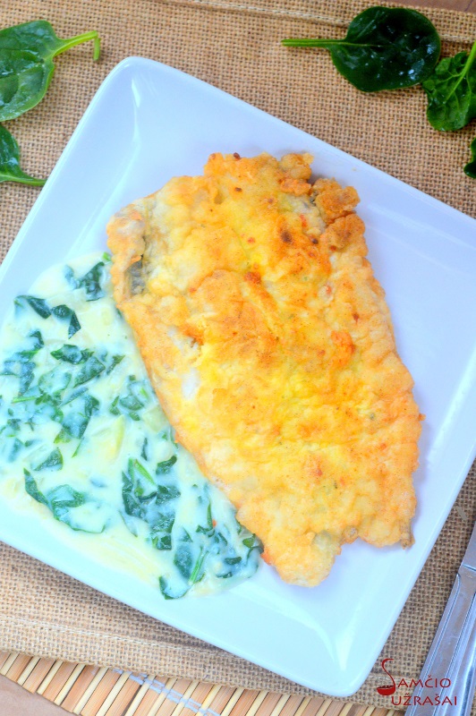 Žuvį nuvalome, perpjauname išilgai ir išimame pagrindinį kaulą. Pabarstome druska bei pipirais. Keptuvėje įkaitiname aliejų. Žuvies filė pamirkome kiaušinio plakinyje ir apvoliojame miltuose. Žuvį dedame į keptuvę ir kepame po 2 minutes iš kiekvienos pusės, kol žuvis iškepa.