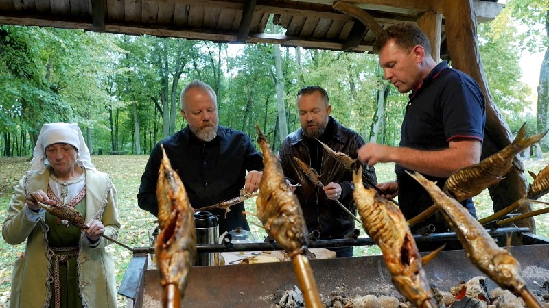„Aplink Lietuvą“ vedėjai nepraleido progos paragauti keptų žiobrių. Šios žuvies skonis pradžiugino keliautojus – ant vytelių kepti žiobriai buvo suvalgyti įtrinti sviestu. „Pusryčiai buvo tobuli“, – sakė V. Radzevičius.